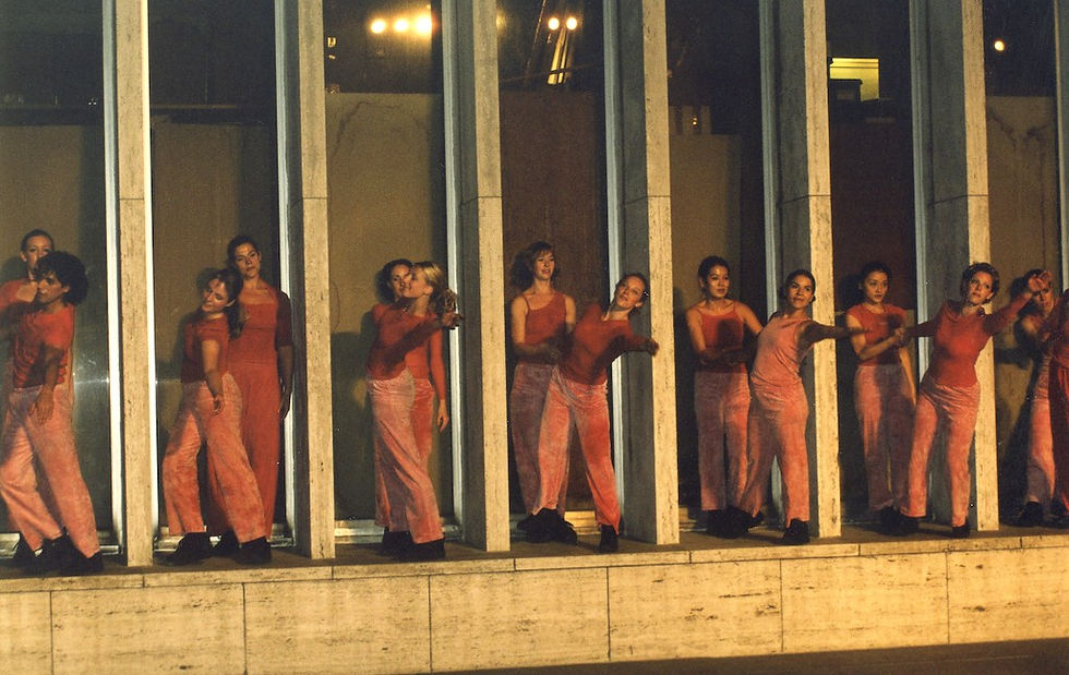 For the re-opening of the Library for the Performing Arts at Lincoln Center, Stephan Koplowitz created (In) Formations, a two-part performance/installation that reflects the great treasures of the Library for the Performing Arts and its importance to the performing arts world. Forty dancers performed on Lincoln Center Plaza in front of the Library and along the wall of the Metropolitan Opera and on threefloors inside the Library for the Performing Arts. An original score by Quentin Chiappetta incorporated music and sound selections from the Library collections and fragments of interviews with Library staff. Original costumes by Christianne Myers referenced the Library building and collections and longtime Koplowitz collaborator Tony Giovannetti was the lighting designer. The 15 minute work was performed several times during each evening.